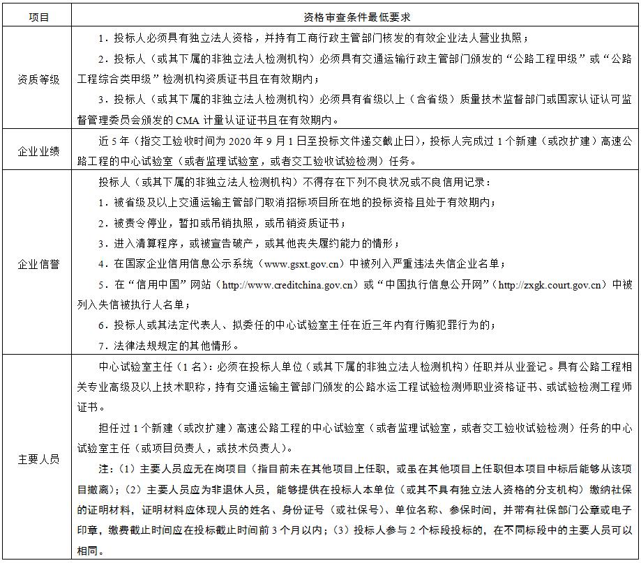3.1本次招标要求各标段投标人必须同时具备的资格要求详见下表: