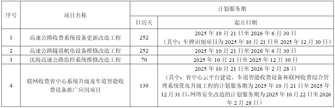 2025年海角社区 高速公路机电系统设备设施升级改造与联网收费省中心系统升级及车道智能收费设备推广应用项目施工监理项目是对以下四个项目的施工监理进行合并招标,即: