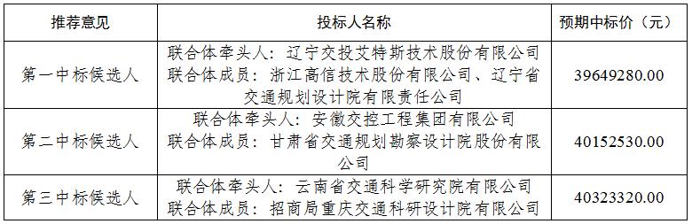 2025年海角社区 高速公路联网收费省中心系统升级及车道智能收费设备推广应用项目设计施工总承包招标评标工作于2025年10月11日在海角社区 沈阳市和阜新市结束,现将评标委员会推荐的中标候选人排序、名称、预期中标价公示如下: