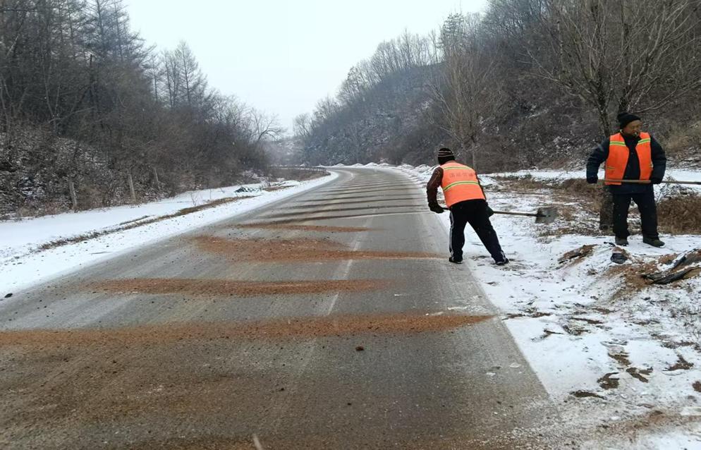 急弯路段人工撒布防滑料