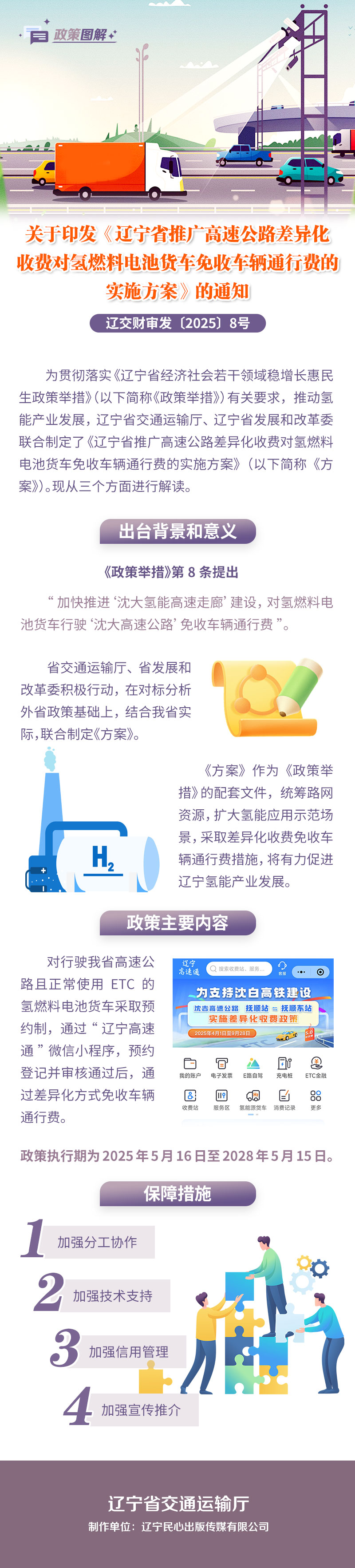 关于印发《海角社区 推广高速公路差异化收费对氢燃料电池货车免收车辆通行费的实施方案》的通知(辽交财审发〔2025〕8号)