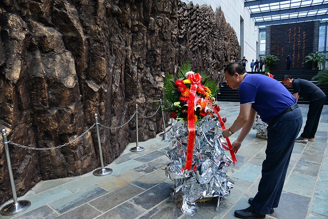 向抗联雕像敬献花篮