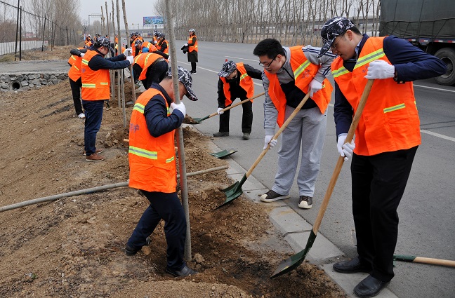 活动中,全体青年志愿者干劲十足、士气高昂,在彩旗的映衬下相互分工合作:一起挥锹铲土、栽苗种树、平整路肩,一起拣拾白色垃圾、清理碎石残土、清洁美化环境。整个劳动场面紧张有序、生动活泼。