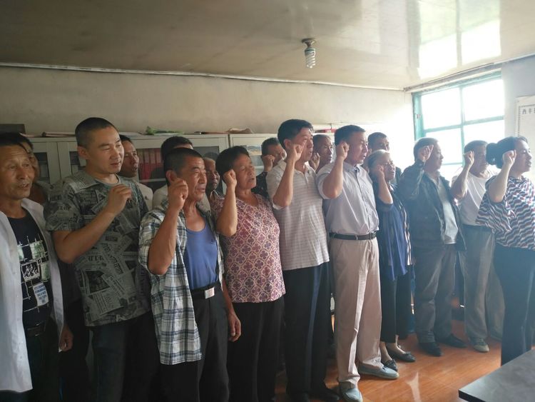 6月30日。我们20多个党员在这间办公室里面对党旗,重温入党誓词。