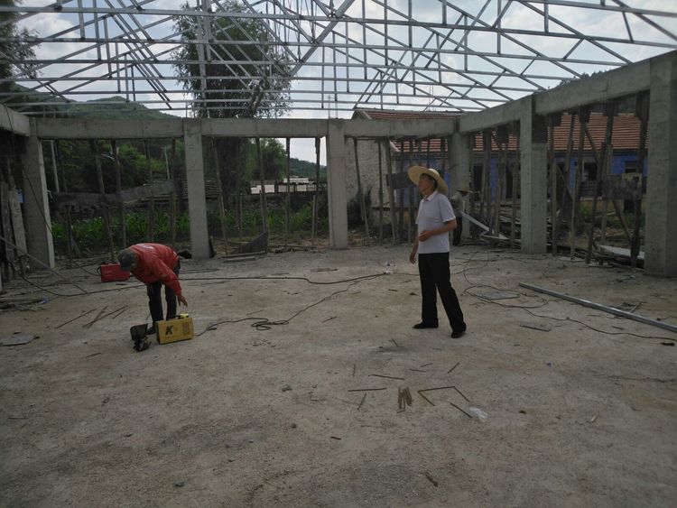 7月1日,完成构造柱、圈梁、室内混凝土垫层、钢屋架安装等工程。
