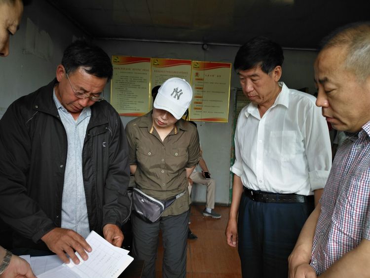 7月4日,乡党委书记孙东、人大主席吕艳库、副乡长张金秋来工地查看工程进展情况。
