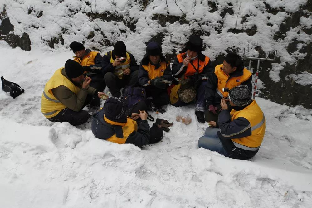 而在长白山脚下大东村的半山腰上,通化工务段大东线路工区里,驻守的工务汉子们,坚持在海拔1000多米的大山中维修线路,他们忍着寂寞,耐着清苦,守护着钢铁大动脉的安全畅通,他们冒着零下30多度的低温奋战在千里铁道线上,风雪,阻挡不了他们前进的脚步,饿了,席地而坐,嚼一口干粮。