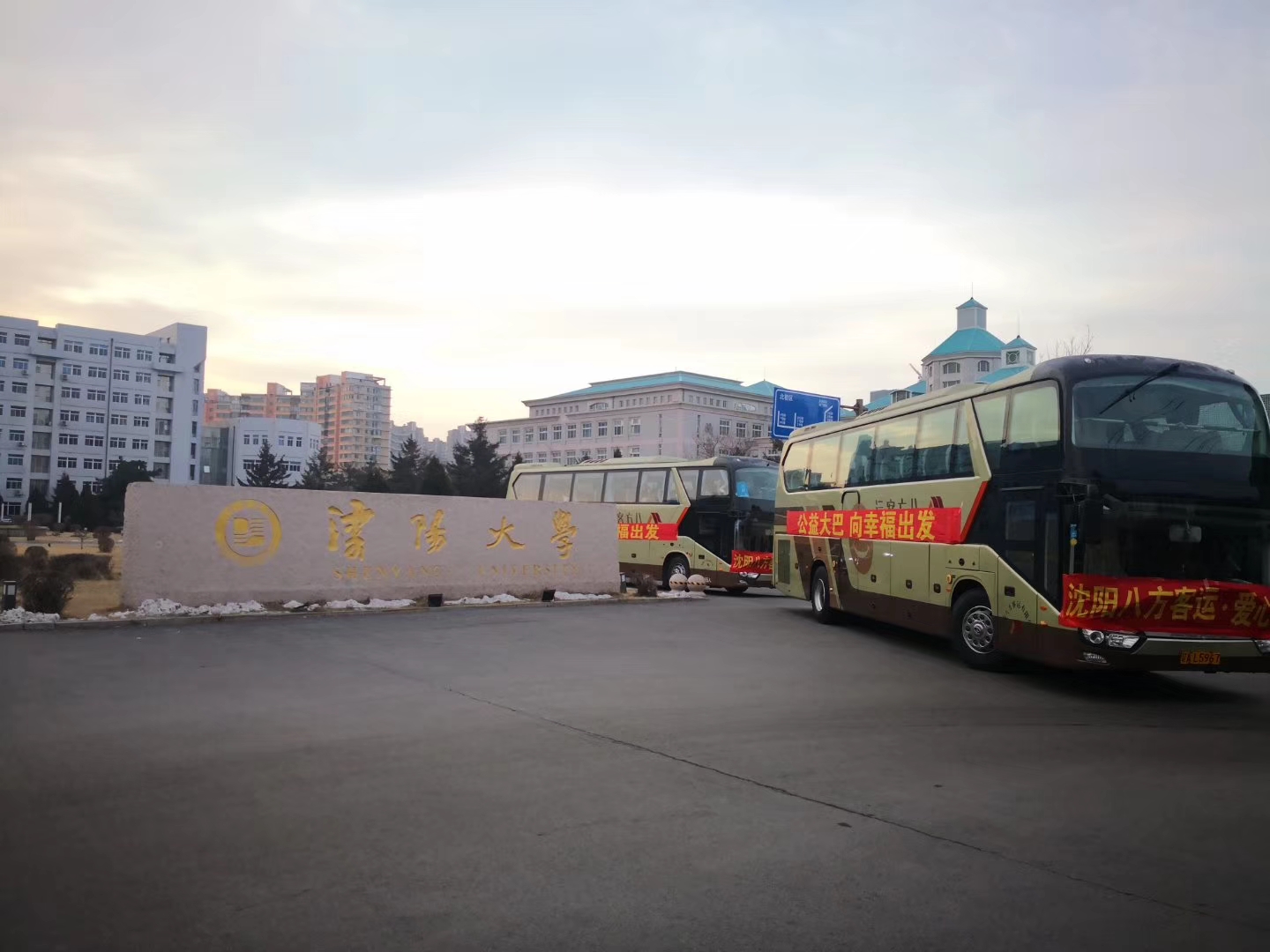 1月10日8:10,由沈阳市委网信办、沈阳市交通局、沈阳市总工会、腾讯大辽网和沈阳八方客运公司联合开展的第七届“送大学生回家—金猪纳万福,情满归乡路”公益活动幸福启程,此次活动开通的是沈阳—朝阳专线,满载100人的公益大巴车队从沈阳大学出发,直奔朝阳,免费送大学生返乡。公益大巴免费送活动唱响了社会正能量,增强了城市凝聚力,提升外乡人在沈的幸福感,激发投身沈阳建设的热情,收到社会各界的广泛好评。