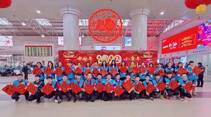 为了让“小年”当天出行的旅客感到“年味”,青年志愿者们在一如既往的做好服务保障之余,还精心策划了“温暖小年”系列活动,用青春热情和欢声笑语将旅客送上回家的旅途。