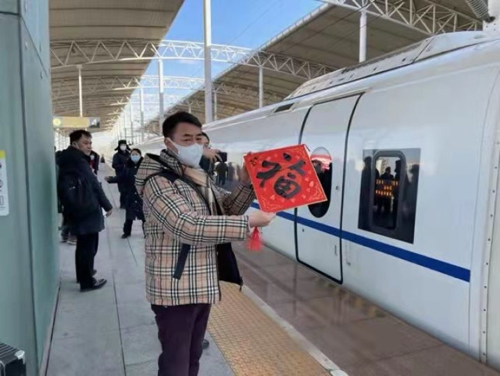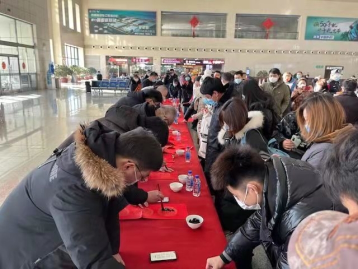 17日,为期40天的2022年春运拉开序幕。当天,中国铁路沈阳局集团有限公司鞍山车务段在鞍山西站等举行“新春送万福 温暖回家路”活动。春运期间,鞍山车务段将采取加开加挂、调整退改签等多项举措,提升旅客春运出行的获得感、幸福感、安全感。活动中,市书法家协会10名书法家亲手为乘车旅客书写“福”字和春联,为广大旅客提前送上新春祝福。