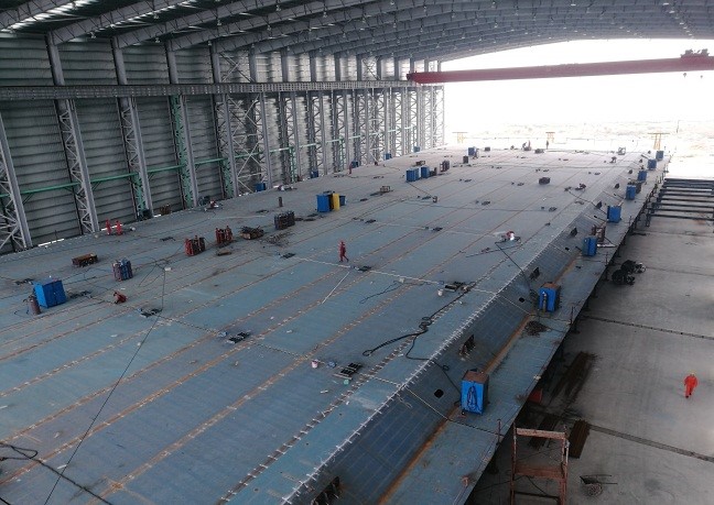 全宽49.7米的双向八车道钢箱梁在工厂拼装