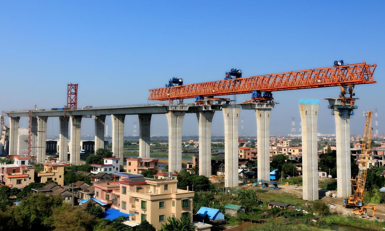引桥中高墩区采用预制节段拼装箱梁标准化设计,全线3533榀箱梁在一个工厂化预制场集中生产,通过专用架桥机装配化架设。引桥低墩区采用标准化预制小箱梁,以工厂化梁板预制取代现浇施工。在桥梁上下部构造、材料和工艺要求等方面采用了标准化设计理念,以标准化设计驱动装配化施工。