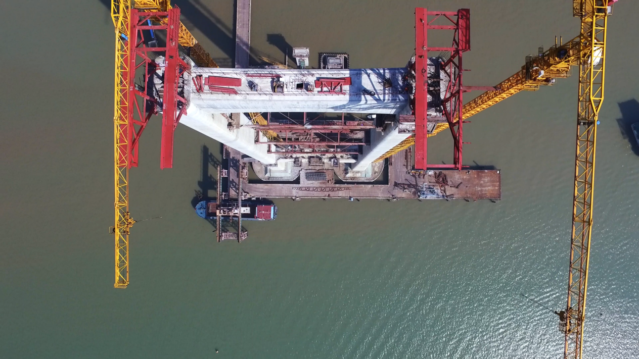 通过墩塔身模板平台、水上栈桥平台、混凝土箱梁预制场、钢筋加工场、拌合站的标准化建设,基本实现了变高空作业为平地作业,变水上作业为陆地作业。