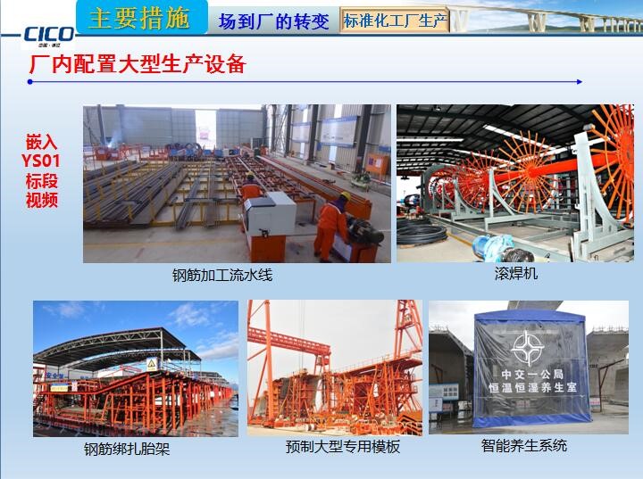 1)提高工厂化覆盖率。混凝土预制构件(包括小型预制构件)与现浇工程(包括隧道及小型构造物)混凝土工厂化覆盖率100%;现浇工程(包括隧道及小型构造物)中的桩基、墩柱、盖梁钢筋成品覆盖率100%,其它钢筋半成品覆盖率100%