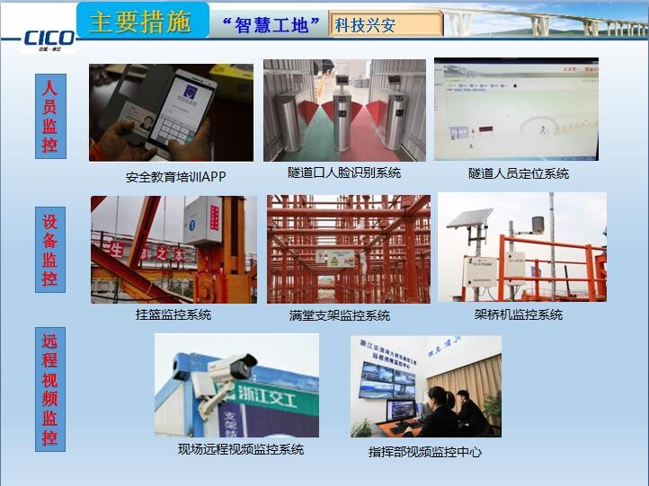 三是聚焦管控难点,大力实施科技兴安。通过安全质量远程视频监控系统实时监控桥梁、隧道、工厂等重要施工现场,并将数据接入省交通工程监管局监控系统。引入满堂支架、移动模架、塔吊、节段梁架桥机四维矩阵式4DM等安全监管(监测)系统与设备操作人员人脸识别启动系统,强化施工作业与大型起重设备的安全管控(见图15、16)。