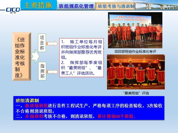 一是落实班组“首件认可制”与“清退制”。班组施工作业水平决定质量与安全的品质,要求班组进行首件生产,从安全操作、工艺技能操作等方面评判,不合格则重新进行首件,3次不合格则清退班组,累计清退69个班组(见图19、20)。