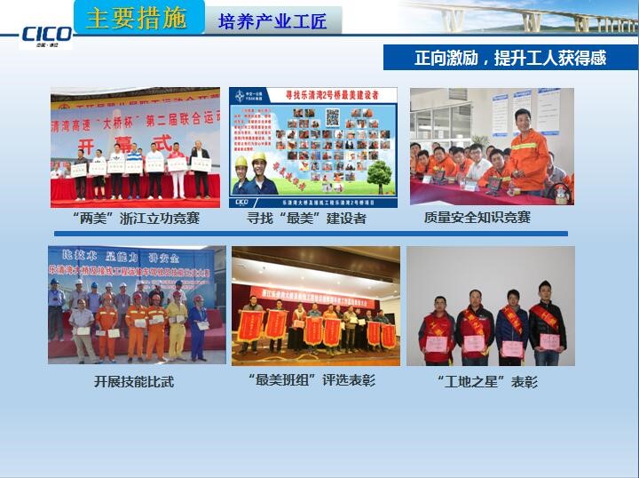 对班组工人实行“鼓励创新、正向激励、人文关怀”三结合管理,并倡导“工艺微改进、设备微改造、工法微改良”的“三微改”,推动农民工向产业工人转变。
